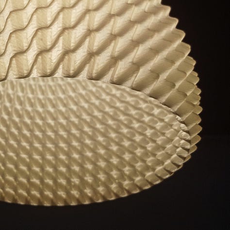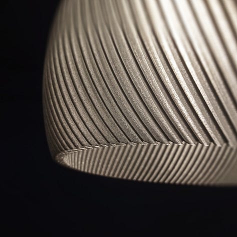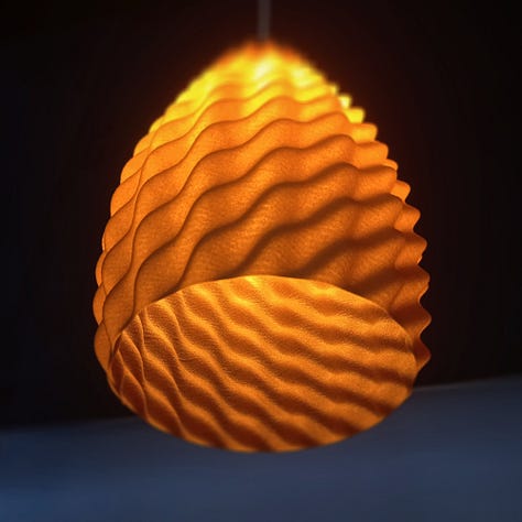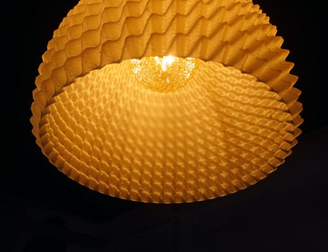 3D printing also enables experiments with forms that were previously impossible. A lamp can now have a structure resembling tissue, mesh, or organic patterns.