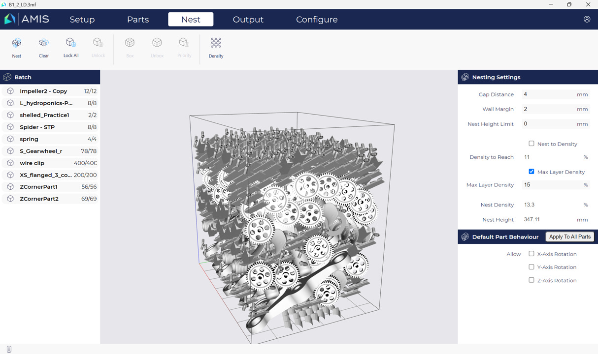 As a result, different types of components can be automatically assigned to different optimisation strategies, enabling better use of machine build space and reducing preparation time.