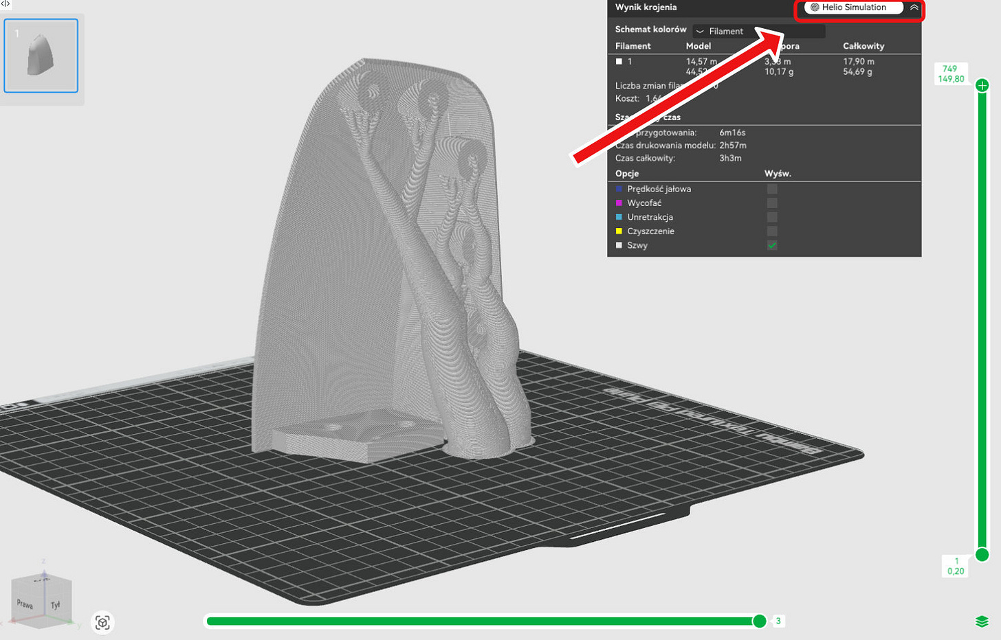 Slice your model as usual, then click the “Helio Action” button to send the G-code for simulation.