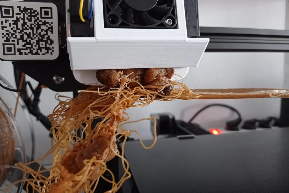 On top of that, it was very difficult to produce and later to use in 3D printing. We used modified Creality Ender 3 MAX printers. We never dared to print wheat bran on a Prusa or Bambu Lab machine - we simply didn’t want to risk damaging them.
