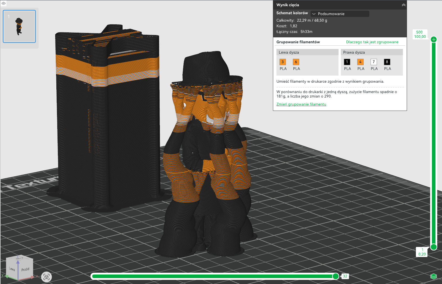 Using the painting tools in Bambu Studio, I managed to fix most surfaces more or less successfully, but I won’t hide the fact that achieving a really good effect would require spending more than just a few minutes on the model.