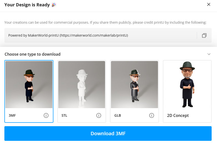 PrintU is not a entirely free tool - each full cycle from photo to finished model costs 10 MakerWorld credits.