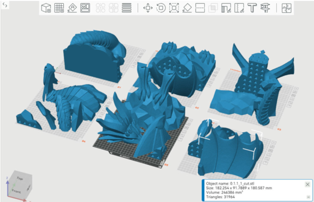 Up until now, tackling large projects required a lot of patience and compromises. The simplest method was manually cutting STL models in 3D mesh editing software such as Meshmixer or Blender.