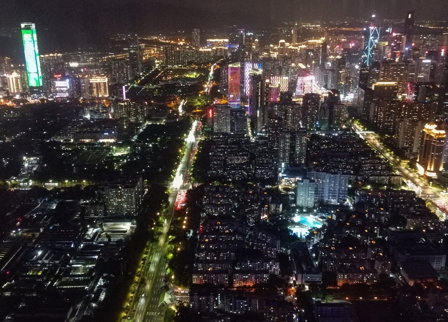 Due to its geographical location, night falls in Shenzhen just after 7:00 p.m. (for comparison, in Poland it's closer to 9:00 p.m.). As a result, the illuminated buildings are visible for most of the evening—you don’t have to wait until late at night as you do in Europe.